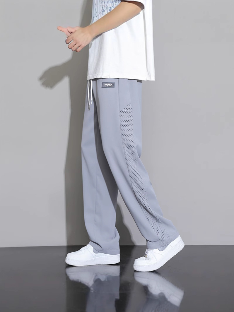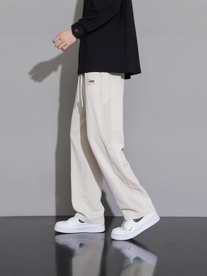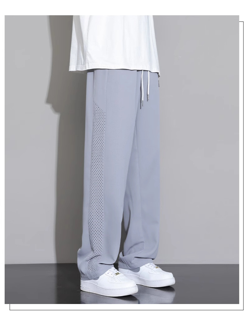 Drape ice silk cool sports wide-leg pants men 2025 summer straight loose casual trousers trend