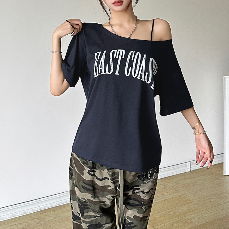 Summer new women's street fashion letter print short sleeve navel exposed T-shirt